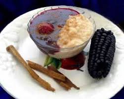 So grandma and grandpa are in town, which makes the house a bit hectic. Ragan and I were joshin' around with las niƱas tonight before dinner, having a good ole time. We're called to the table and sit down, expecting the green spaghetti. Instead we are presented with chicha morrado. Don't let the picture below fool you (it's the closest I could find to what dinner looked like). Our bowls were one-half somethingkindoflikericepudding, and one-half purple gelatinous goo that could have been sculpted into and number of 3-dimensional figures. Ragan and I look at our plates, then each other, and then to Leah, host mom, who has just brought out a can of condensed milk to pour on top. When I politely attempted to decline the condensed milk she said, "Oh, but it's good. It adds another flavor!" Call me crazy but I am pretty sure sweet and sweeter are the same flavor.